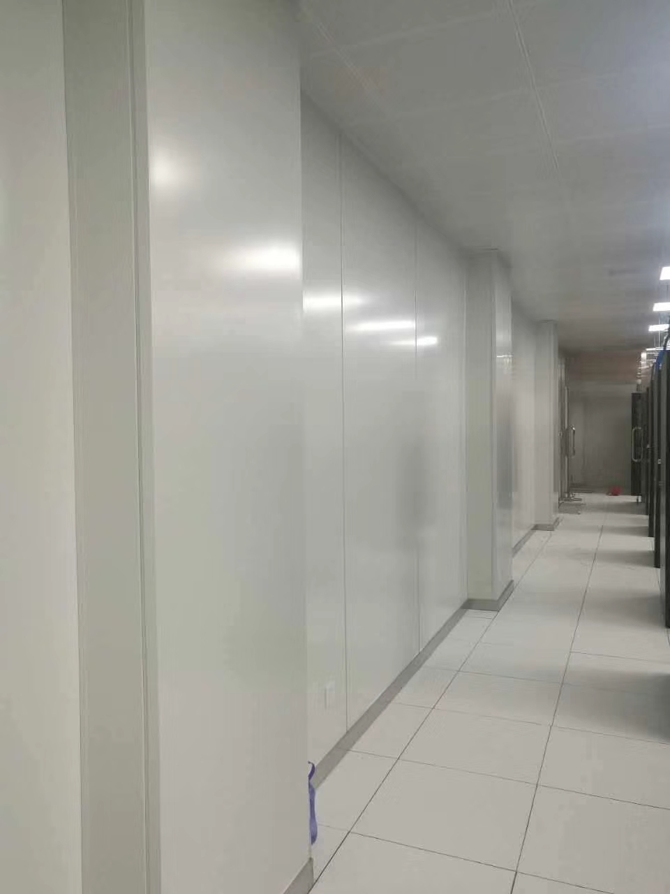 2、由一側開始安裝彩鋼板,依次安裝,相連板間距12mm。隔板之間采用寬度12mm壓條,標準單元墻板均可互換。