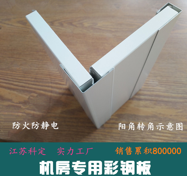 2、由一側(cè)開始安裝彩鋼板,依次安裝,相連板間距12mm。隔板之間采用寬度12mm壓條,標(biāo)準(zhǔn)單元墻板均可互換。